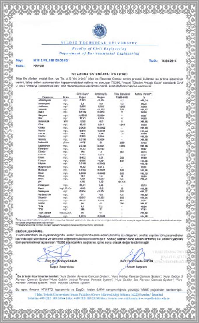 Aura Cebilon, TSEK, TÜV ve NSF gibi bağımsız test kuruluşu otoriteleri tarafından test edilmiş ve onaylanarak sertifikalandırılmıştır. Türkiye’de üretilen NSF sertifikasına sahip tek cihazdır.